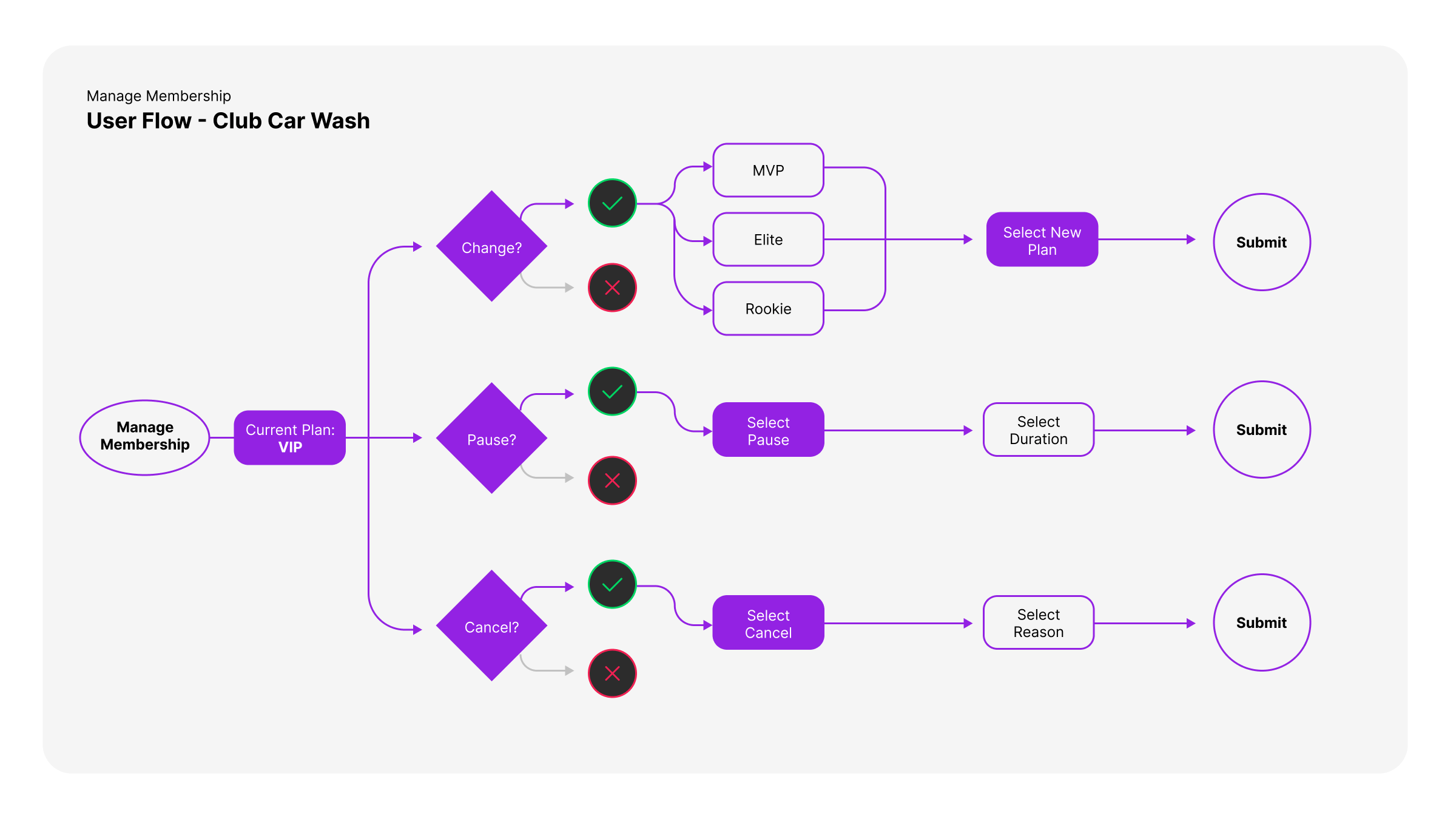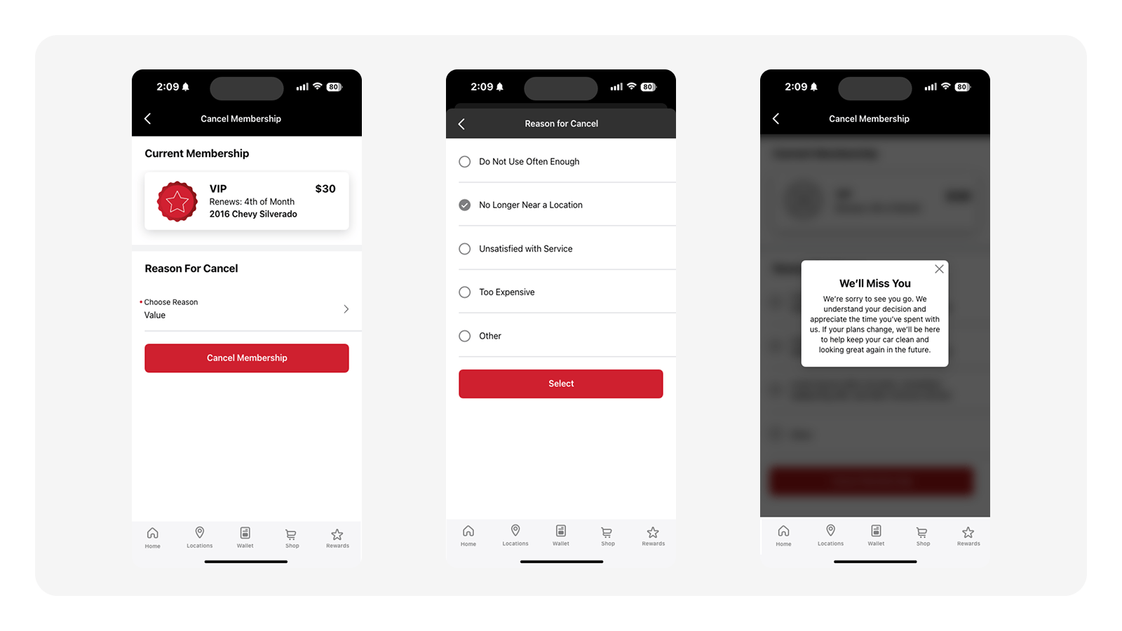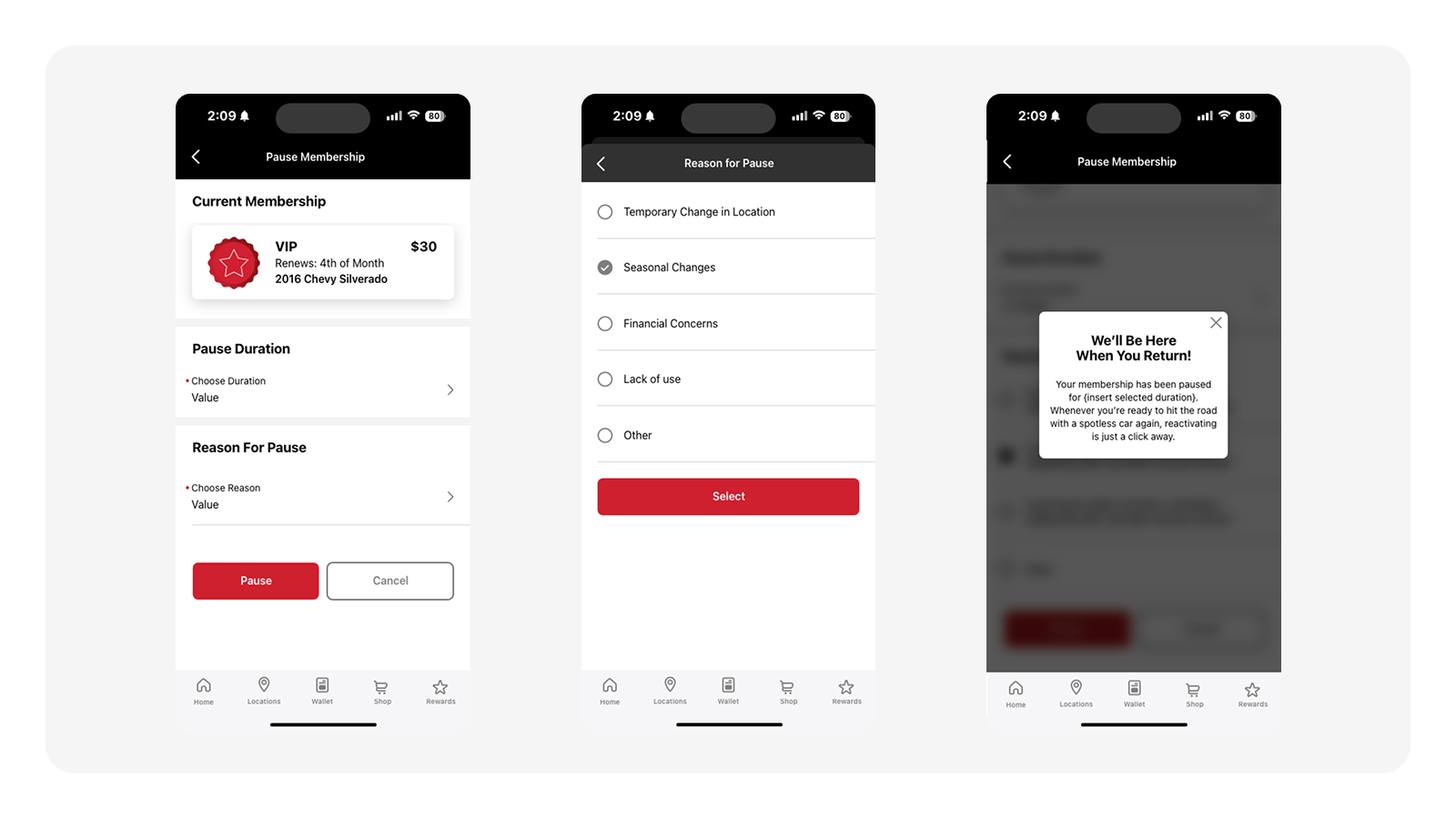 One of the primary goals was to give customers a simple way to update, cancel, or pause their car wash memberships themselves. The existing process led to support calls, with employees having to perform those tasks.