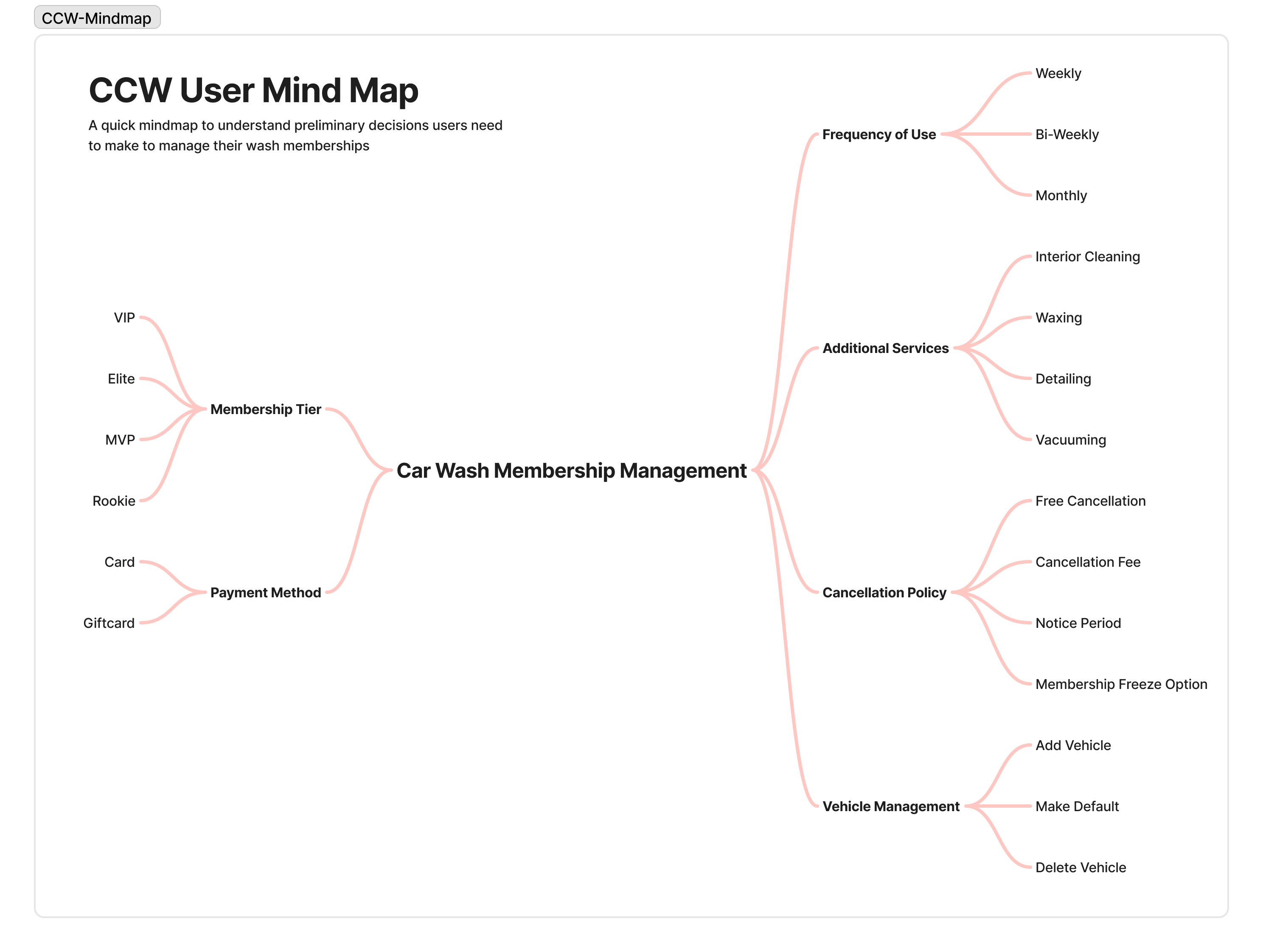 The research plan will start with interviews and surveys targeting current car wash members to understand how they manage their memberships on the website. We are creating a mobile app and will take those features and apply them to the website to synch each experience.