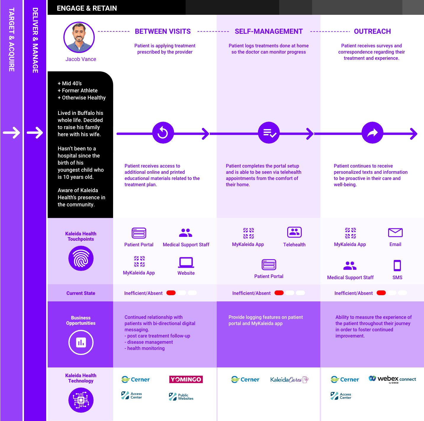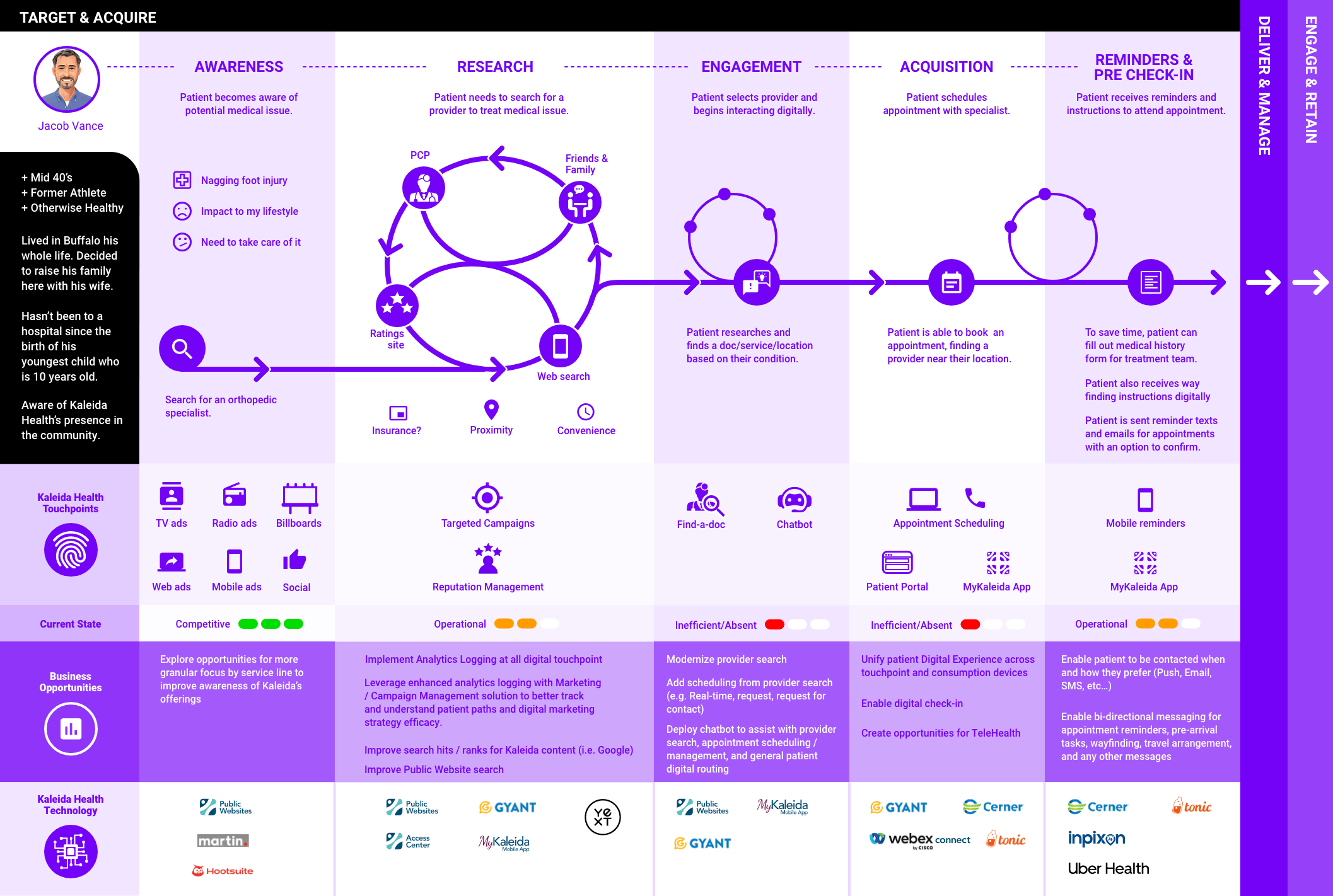 Patient Journey – Build an end-to-end patient journey, highlighting all categories of touchpoints.